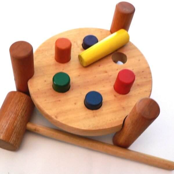 The Libo Dowel Tapping Exercise is a Montessori material that helps to develop fine motor skills in infants and toddlers. Its unique design includes two different sized wood dowels with a series of notches on each of the pieces. The child is encouraged to tap each piece into the space created between them, reinforcing concepts such as size, shape and directionality while training their hand-eye coordination. This activity promotes cognitive development, introduces children to basic problem solving techniques and encourages creative thinking.