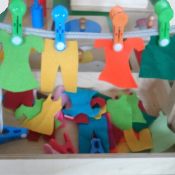 This Little Wooden Clothes Hanger Frame from Libo is perfect for introducing practical life skills to your child. It provides a realistic experience which helps young learners prepare for their future. It comes with four wooden pegs, allowing them to hang up clothing items within a safe and secure frame. This product is an essential in any Montessori environment, as it aids in developing the skills required for everyday personal care tasks such as dressing themselves and tidying away clothing items.