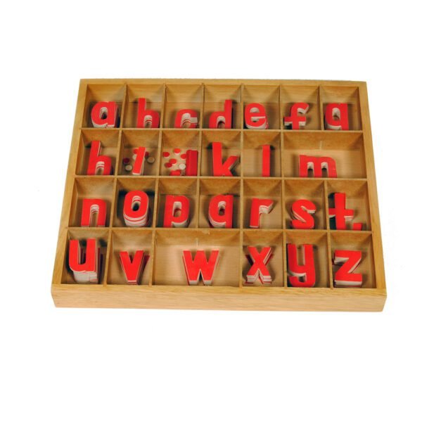 Libo SMA Red Letters is a language learning product designed for use in Montessori classrooms. The colorful wooden letters feature raised golden edges and have moveable parts to help children build and write words. They are also an effective way to teach phonics and further develop reading skills. It encourages pronunciation, spelling, grammar, and vocabulary knowledge in an interactive and fun way. This product is recommended for children ages 3-6 years old.
