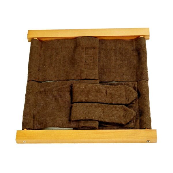 The Libo Velcro Frame is a practical life-based Montessori material designed to help children develop their fine motor skills while learning to manage their environment. This versatile frame can be used in several ways, such as attaching objects with velcro strips or using the included double sided velcro to attach pouches, cards and other items. With its lightweight design and sturdy construction, this frame is ideal for both classroom and home use. Children can also learn important concepts of independence, logic and order while using the Velcro Frame.