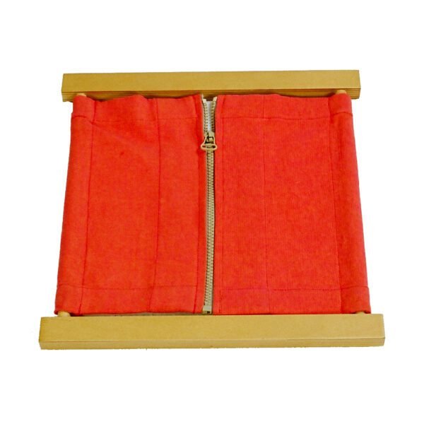 This Zip Frame from Libo is a unique Montessori Practical Life tool that helps toddlers and preschoolers learn everyday tasks, fine motor skills, and refine concentration. The light-weight frame features a sturdy wooden base with a bright pink zip around the edges. This allows children to practice zipping up their clothing or accessories while also providing tactile stimulation. The frame has smooth curves and rounded corners, making it easy to hold and maneuver. It’s both durable and safe for little hands, making it perfect for home use or in the classroom.